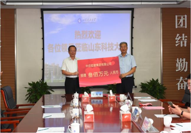 近期,中啟膠建集團與山東科技大學(xué)校企合作捐贈儀式在山東科技大學(xué)舉行,中啟膠建集團黨委書記、總經(jīng)理郭道盛,建筑九公司經(jīng)理張全昌,校黨委書記羅公利、副校長張英杰及雙方有關(guān)部門負責人參加捐贈儀式。