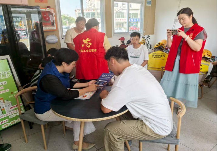 活動當天,膠州市總工會權(quán)益部、基層部的領(lǐng)導和九龍街道司法所的工作人員早早來到現(xiàn)場,耐心接待每一位咨詢者。從勞動糾紛中的薪資結(jié)算、合同簽訂,到民事侵權(quán)中的責任劃分,再到日常工作中的權(quán)益保障問題,工作人員都結(jié)合具體案例一一細致解答,還針對性地普及相關(guān)法律知識,引導大家通過合法途徑維護自身權(quán)益。現(xiàn)場氣氛熱烈,不少戶外勞動者帶著疑問而來,帶著清晰的解決方案滿意而歸。一位外賣小哥感慨道:“平時遇到糾紛不知道該找誰,這次驛站把律師請到家門口,問題一下子就理清楚了,太感謝了!”