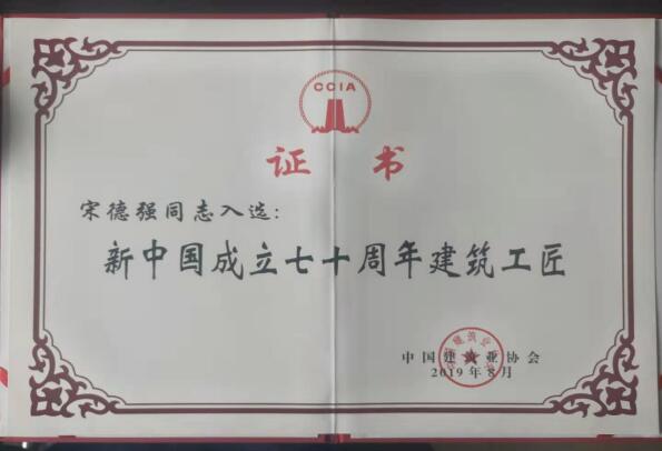 集團職工宋德強同志獲評“新中國成立70周年·建筑工匠”稱號