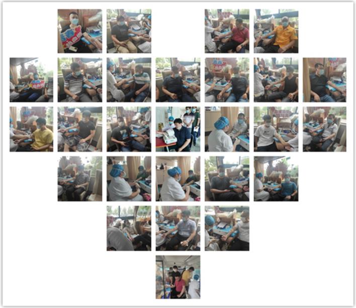 獻血員工提前來到獻血車前排隊等候,大家通過信息登記、血液類型檢驗等一系列環節,將自己的一份力量、一份溫暖通過獻血表達出來。他們一邊為自己能對社會奉獻點滴愛心而感到滿足和自豪,同時在醫護人員的熱情指導下,用笑語嫣然的心情緩解采血過程的緊張心理。