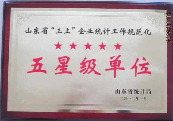 我公司被省統計局認定為山東省“三上”企業統計工作規范化五星級單位?!叭稀逼髽I統計星級單位管理,是我省推進“四大工程”建設,提高企業統計規范化管理水平,而開展的一項創新性工作。公司認真按照《山東省“三上”企業統計星級單位管理實施方案》規定的標準,從管理制度、機構設置、軟硬件設施、統計臺賬、資料管理、法制建設等方面,自覺加強企業統計工作,經過嚴格逐項打分評定后,順利通過了省統計局驗收。這是省統計局對我公司統計工作的充分肯定,標志著我公司的統計工作規范化水平已經走在全省企業的前列。我公司將以此為鞭策,進一步加強單位統計工作,提高統計工作規范化水平,使統計工作在提高源頭統計數據質量、服務行業發展中發揮更大的作用。