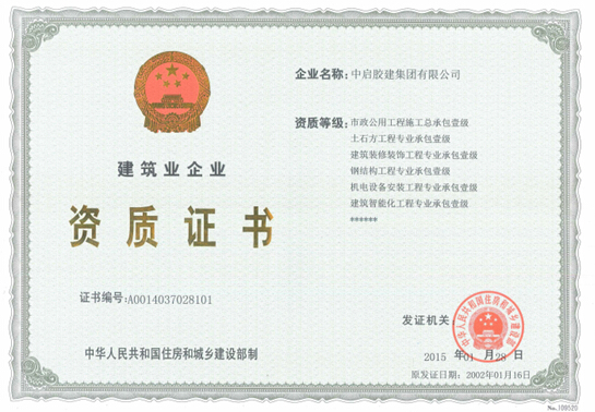 1月30日下午,國(guó)家住房和城鄉(xiāng)建設(shè)部正式發(fā)布公告,中啟膠建集團(tuán)有限公司順利晉升為市政公用工程施工總承包壹級(jí)資質(zhì)。