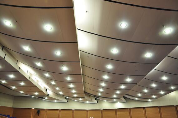 該工程弧形網(wǎng)架屋面,QC小組人員奮力攻關(guān),克服了定位難,節(jié)點復雜的困難,研發(fā)出了弧形網(wǎng)架高強玻纖巖棉保溫板施工工法,取得良好的質(zhì)量效果,該方法總結(jié)的成果獲得2015年度青島市QC成果二等獎。該工程采用的天然及人造塊材精加工與施工等多項新技術(shù),達到國內(nèi)領(lǐng)先水平。