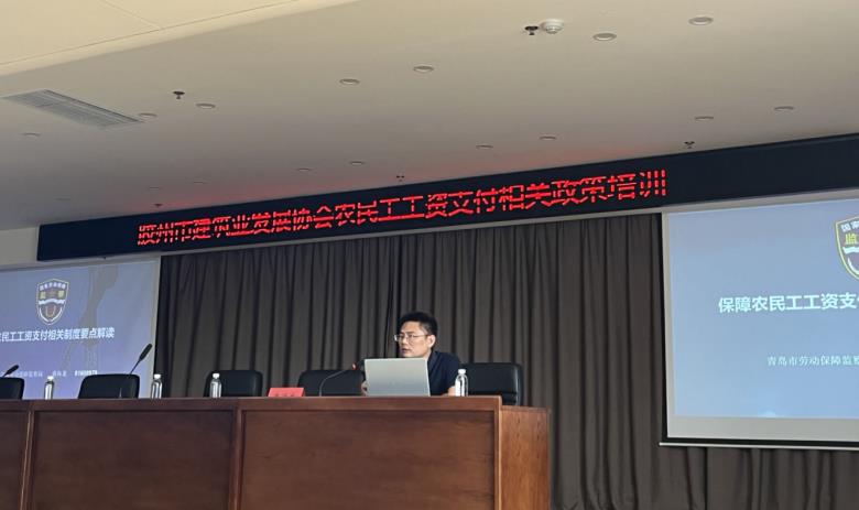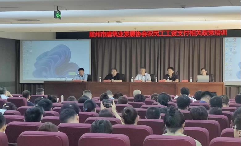 為進(jìn)一步加強(qiáng)建筑工程項(xiàng)目管理,規(guī)范現(xiàn)場(chǎng)勞務(wù)用工管理,深入了解《保障農(nóng)民工工資支付條例》等法律法規(guī),引導(dǎo)企業(yè)加強(qiáng)勞動(dòng)用工管理,規(guī)范工資支付行為,確保工程建設(shè)安全有序推進(jìn)。2023年7月6日上午,膠州市建筑業(yè)發(fā)展協(xié)會(huì)在澄韻中心順利舉行保障農(nóng)民工工資支付方面的相關(guān)政策培訓(xùn)。膠州市住建局副局長(zhǎng)宋世謙和膠州市人社局勞動(dòng)關(guān)系協(xié)調(diào)中心主任李臻出席了本次培訓(xùn)并講話(huà),參加培訓(xùn)的有會(huì)員單位負(fù)責(zé)人及勞務(wù)工作人員共200多人。培訓(xùn)由協(xié)會(huì)秘書(shū)長(zhǎng)劉堯主持。