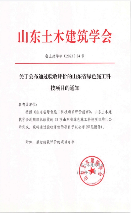 自項目立項以來,集團、分公司、項目部對該項目的綠色施工實施情況高度重視,確定了綠色施工實施方案并在項目上落實;項目定期進行自評,及時對比分析各項指標完成情況,并積極采取改進措施。通過不懈努力,該項目于2022年通過了山東省綠色施工科技項目的中期評價,并于今年11月順利通過了山東省綠色施工科技項目評價驗收。通過評價,項目達到預期制定的“五節(jié)一環(huán)?!蹦繕?,綠色施工科技示范效果良好。
