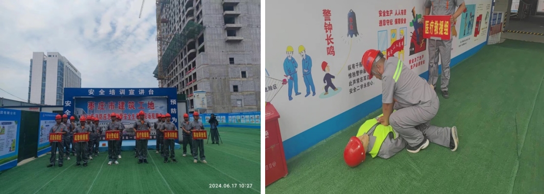 今年6月是全國第23個“安全生產月”。為深入貫徹習近平總書記關于防災減災救災重要指示精神,進一步提升建筑工地消防預警研判、響應聯動、快速處置和應急救援能力,2024年6月17日,公司在承建的嶧城區人民醫院改擴建項目舉辦棗莊市建筑工地消防應急演練活動暨嶧城區住建系統安全月現場觀摩會。嶧城區委常委、副區長張強等領導以及相關單位負責同志參加活動。