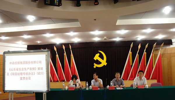 為全面落實主體責任,強化各級安全思想意識,確保安全生產,提高項目經理主觀能動性, 2017年6月17日上午生產計劃部組織集團各單位負責人、分管經理、安全管理人員、 項目經理和項目安全主管學習了《山東省安全生產條例》和《項目經理考核辦法》,會議由中啟控股集團監事會主席張桂香主持。